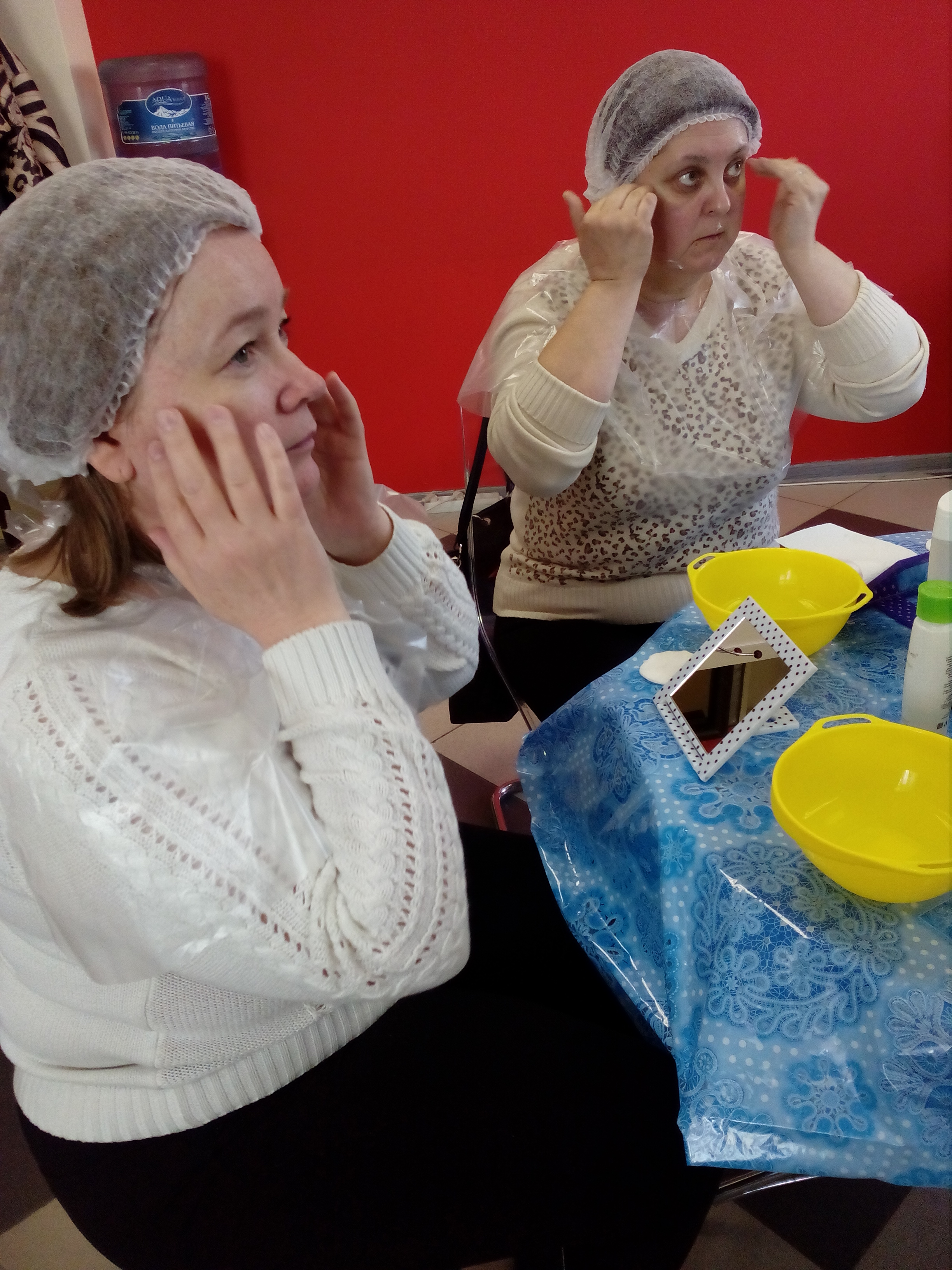 - В практической части гости сами проделали процедуры по уходу за лицом, начиная с очищения и заканчивая нанесением тональной основы, руководствуясь замечаниями и помощью кураторов;